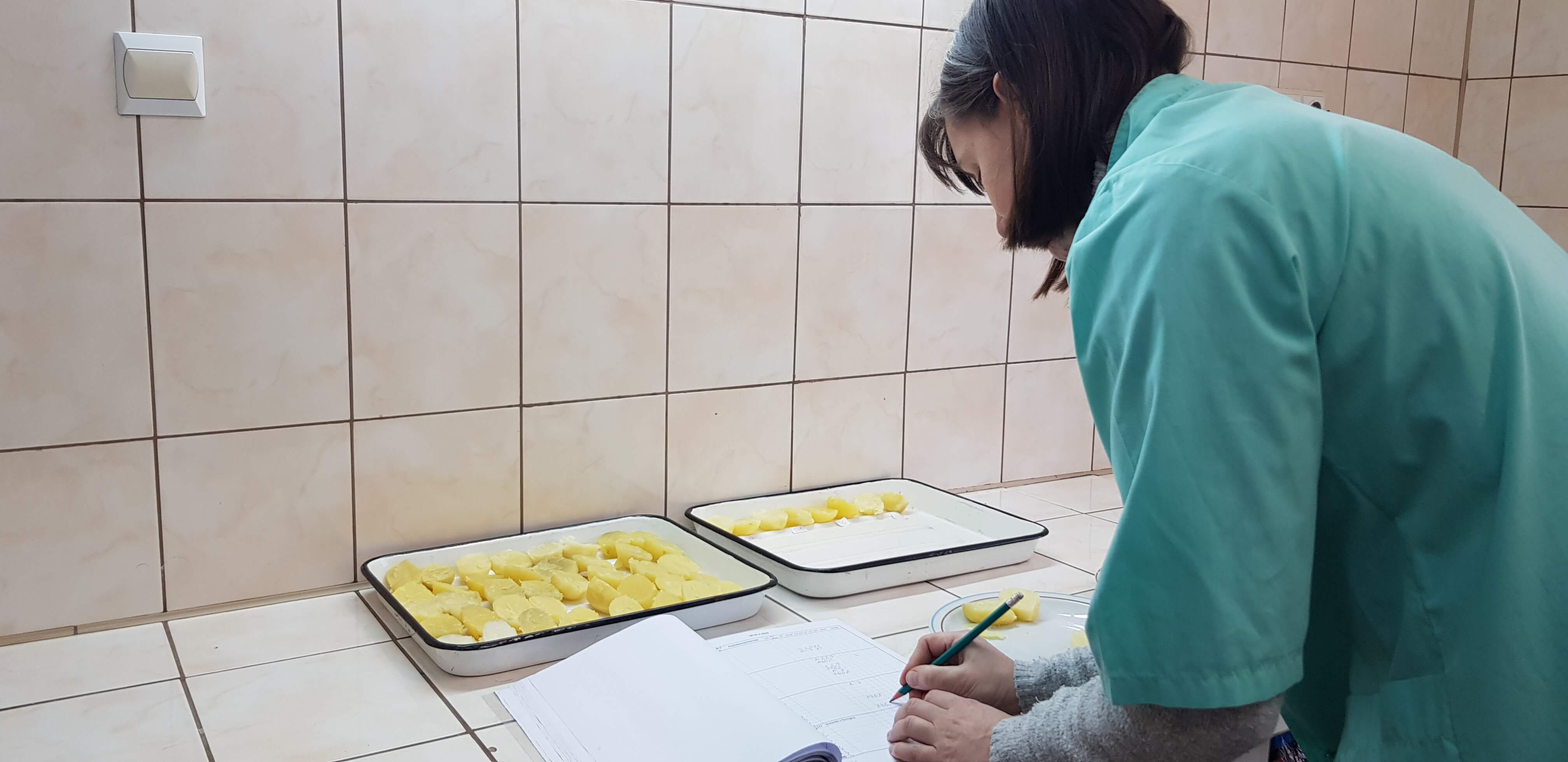 Wraz z Panią Olą Bech i Panem Mariuszem Krzoska oceniliśmy stan przechowywanych bulw z naszych doświadczeń.